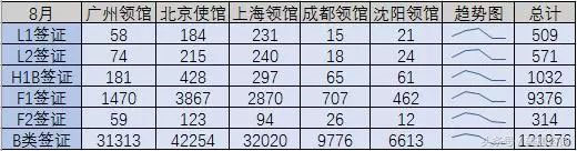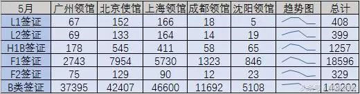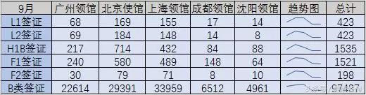 3-9月美国五大领馆的主要签证签发数统计如下图: